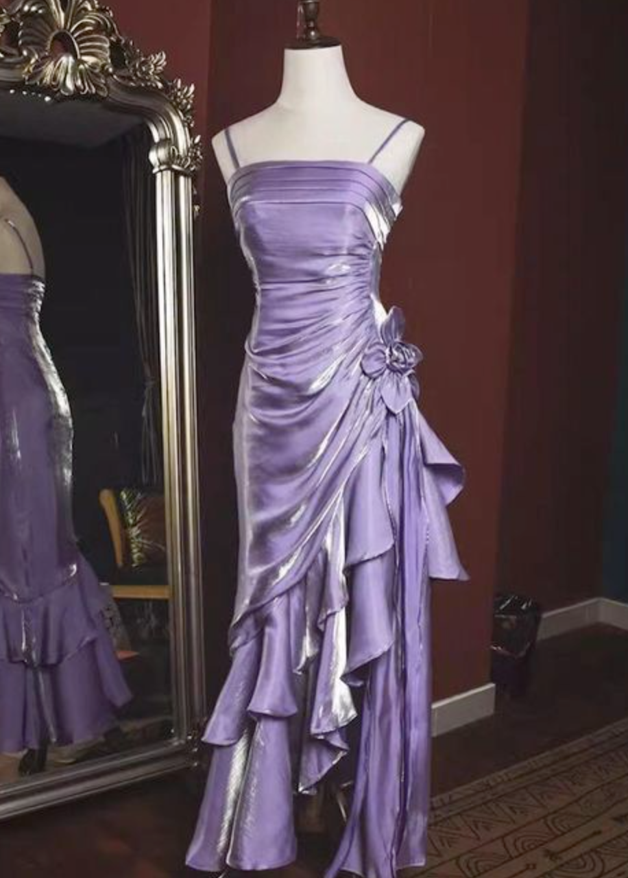 Augmented reality Lavender Sexy Prom Dress,Purple Designed Evening Gown,Satin Lilac Partywear
