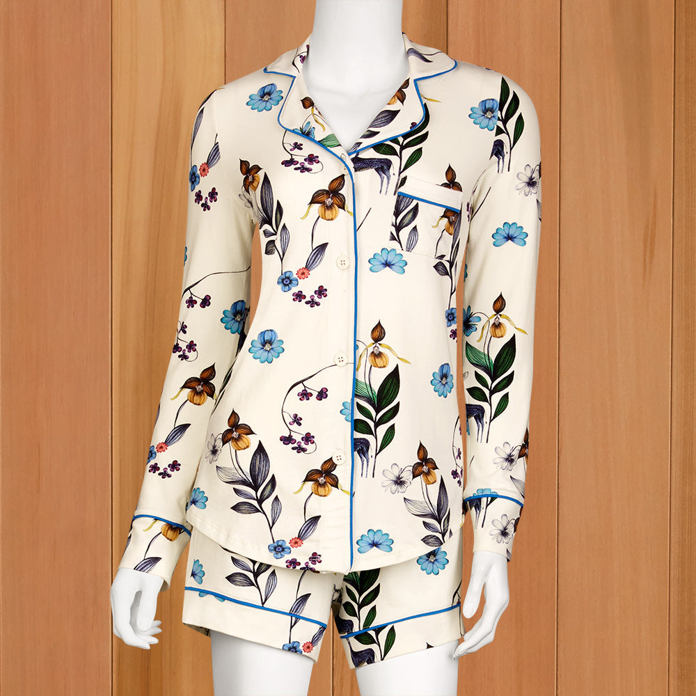 Sweet dreams, deer. Stay cool and cozy at bedtime with this Pajama Set. The luxuriously soft cotton/modal blend make these PJs perfect for warm sleepers or summer nights. Makes a lovely gift for someone special.